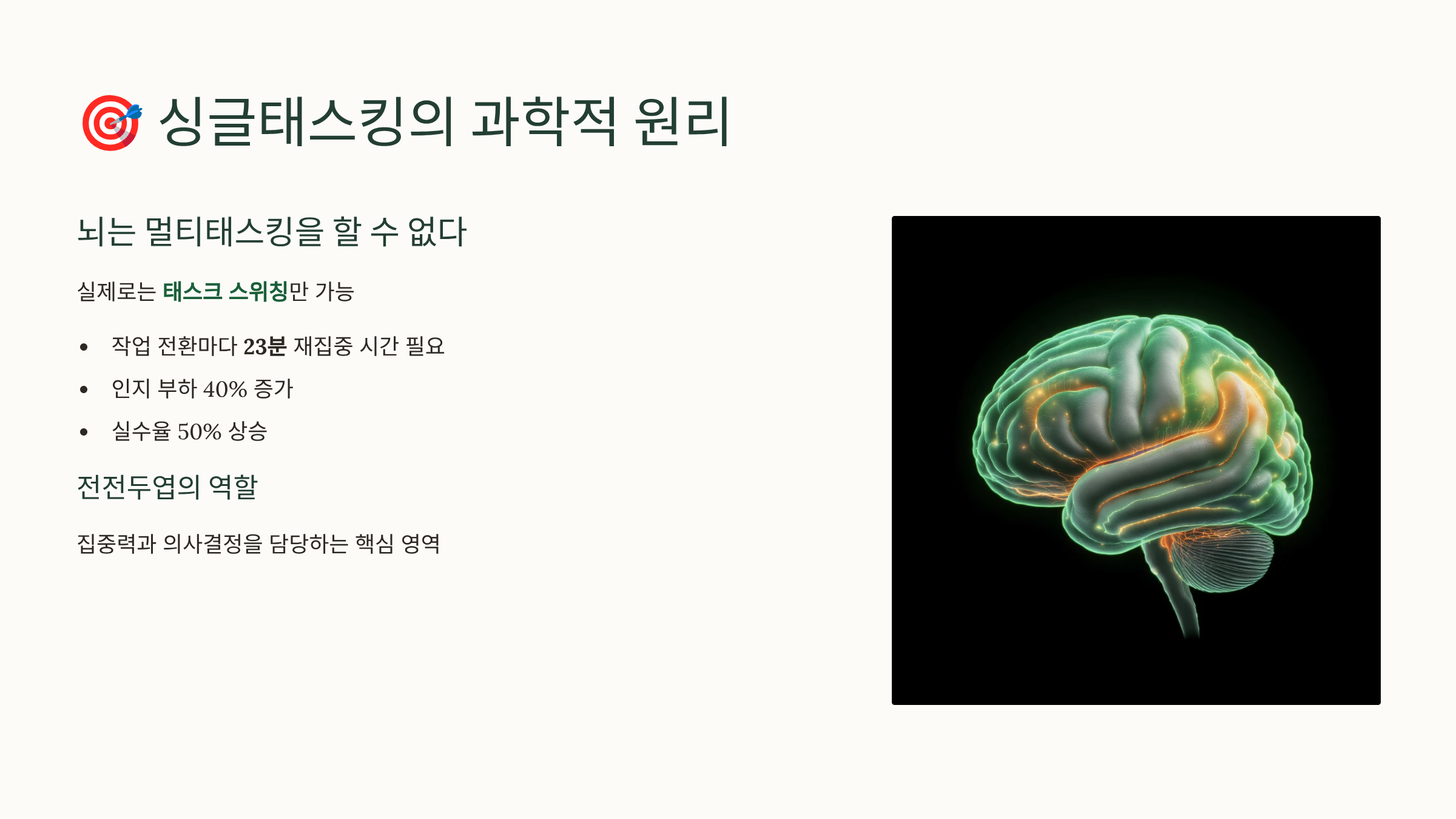 🎯 싱글태스킹의 과학적 원리와 뇌 메커니즘