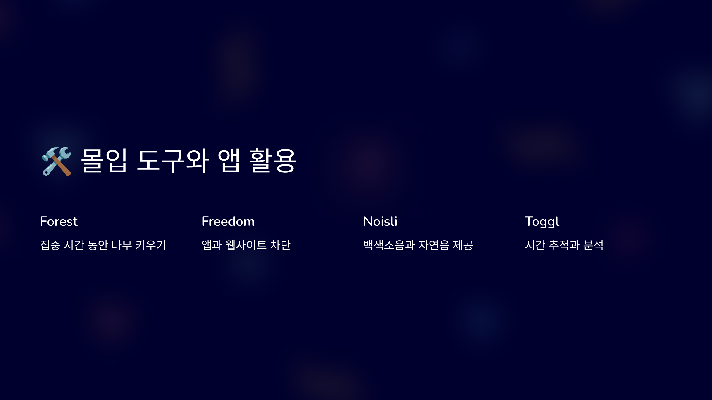 🛠️ 몰입 도구와 앱 활용법